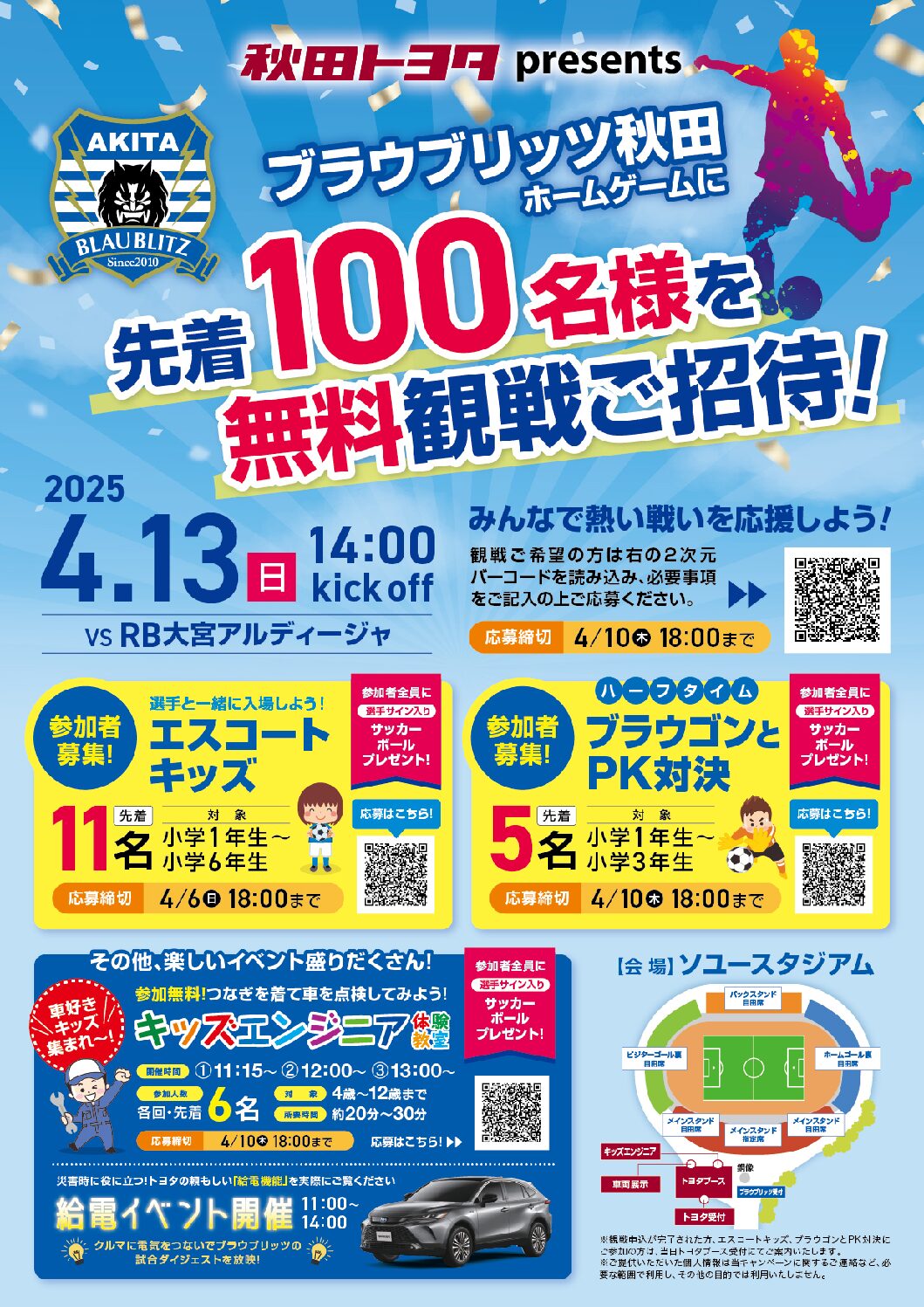 ブラウブリッツ秋田ホームゲーム冠試合イベ…